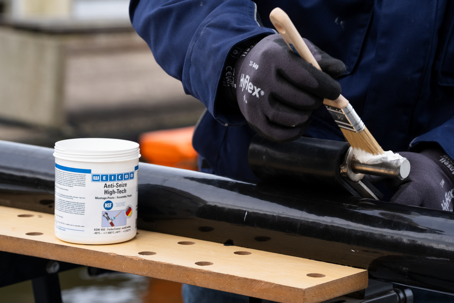 The assembly paste WEICON Anti Seize High-Tech is high-temperature-resistant, has excellent separating characteristics, is metal-free, neutral to materials and has an NSF registration. It is particularly suitable when metal-containing pastes can cause electrolytic reactions, when nickel-containing products should or may not be used due to health reasons and when dark metal-containing products should or may not be used for visual reasons.