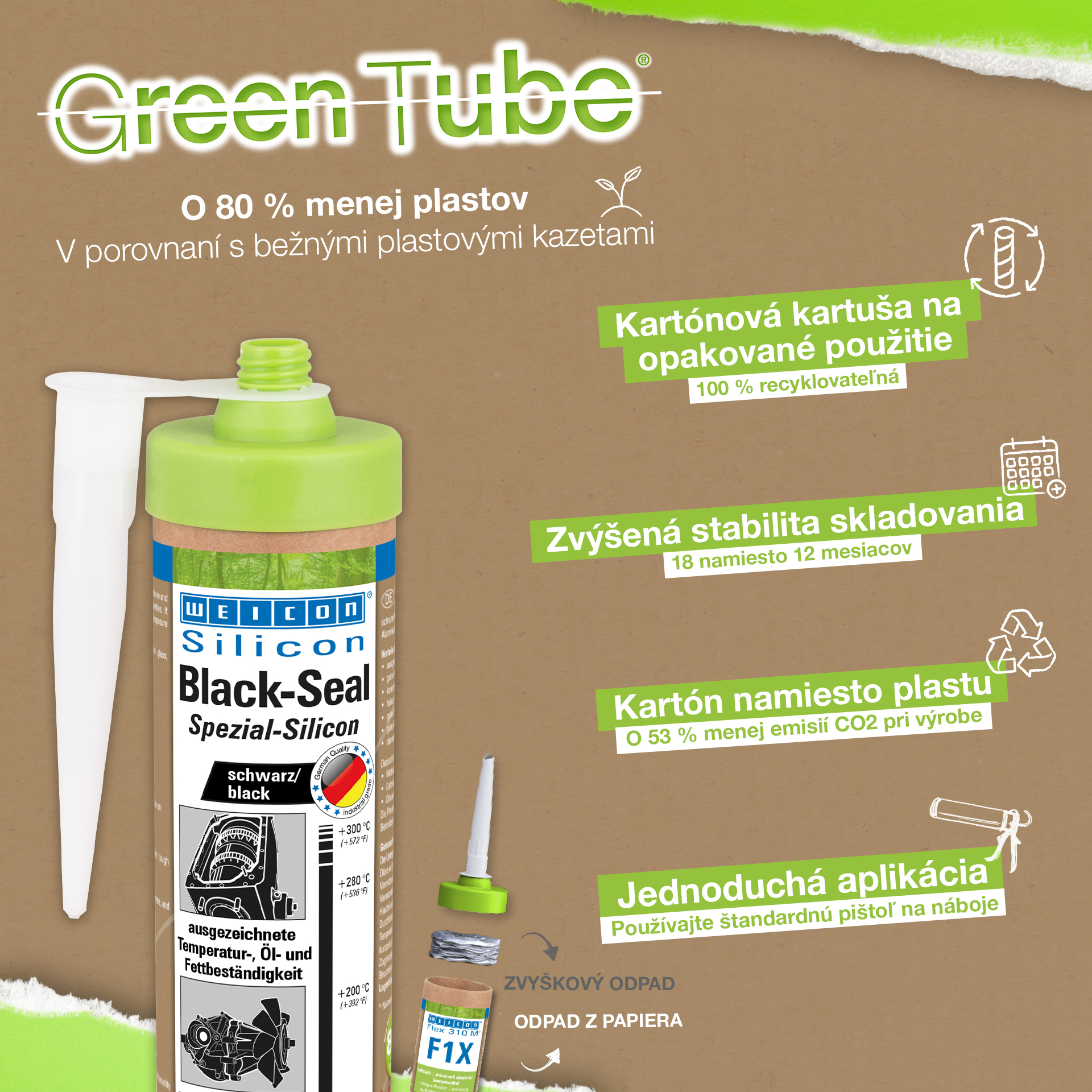 WEICON Black-Seal is black, high-temperature-resistant (+280 °C/+536 °F), free of solvents, strong, oil-resistant, grease-resistant, pressure-resistant, resistant to ageing and extremely elastic (breaking elongation of approx. 500%). It is suitable for bonding and sealing in applications where particularly high oil and grease resistance is required. The product can be used on gearbox, valve and casing covers, oil sumps, water pumps, gears and axles, flanges, tanks and containers, and in many other areas.