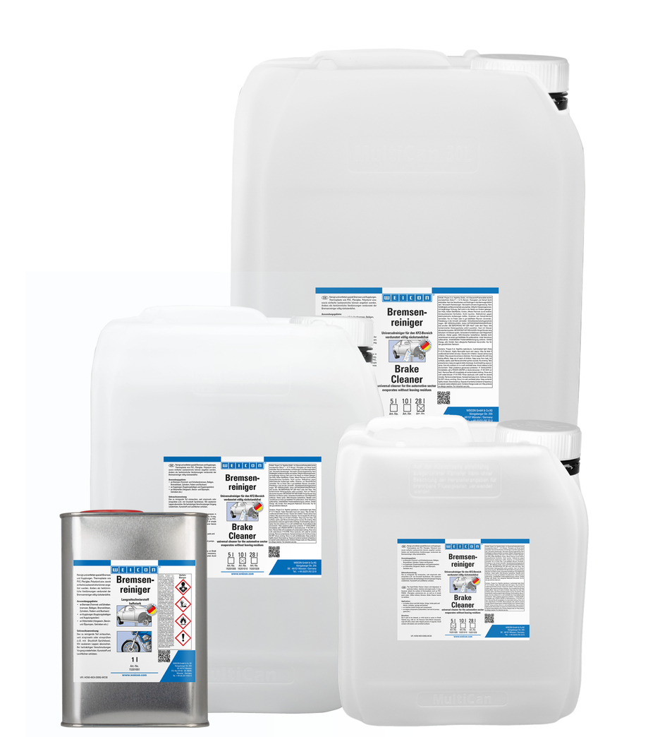 WEICON Brake Cleaner is a universal cleaner for the automotive industry, which cleans, degreases and evaporates without leaving residues. Brake Cleaner quickly and effortlessly degreases and cleans metals, glass and many plastics. It removes oily and greasy impurities and residues. WEICON Brake Cleaner can be used on brakes (drum and disc brakes, brake pads, brake blocks, cylinders, springs and bushings), clutches (clutch linings and components) and on engine parts (carburettors, fuel and oil pumps, gears etc.).