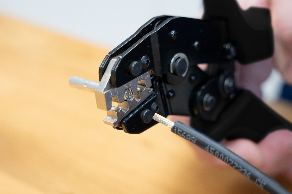 MC4-Crimp has been specially developed for the process-safe crimping of MC4 connectors on PV systems. The crimping tool has a ratchet mechanism with a blocking device to ensure a consistently high crimping quality and results that can be precisely repeated. The mechanism only opens the tool when the crimping process is complete. An emergency release has also been integrated into the handle, which opens the crimping tool in the event of misuse. Thanks to the accurate eccentric setting of the tool, the crimping force can be precisely adjusted. This feature ensures a consistently high crimping quality. With the Multi Change System, the crimping modules of the tool can be exchanged quickly, as needed. The simple change system, which requires no additional tools, ensures that the modules can be installed and removed fast. The standard version of the MC4 crimping tool is supplied with a high-quality steel module for MC4 connectors with cable cross-sections of 2.5 mm², 4 mm² and 6 mm² (14-10 AWG). The 2-component handles of the crimping tool ensure non-slip and ergonomically friendly handling with maximum force transmission. The tried and tested “ice-crack design” was used, which ensures a comfortable feel. The integrated eyelets on the handles offer the option of attaching a safety catch.