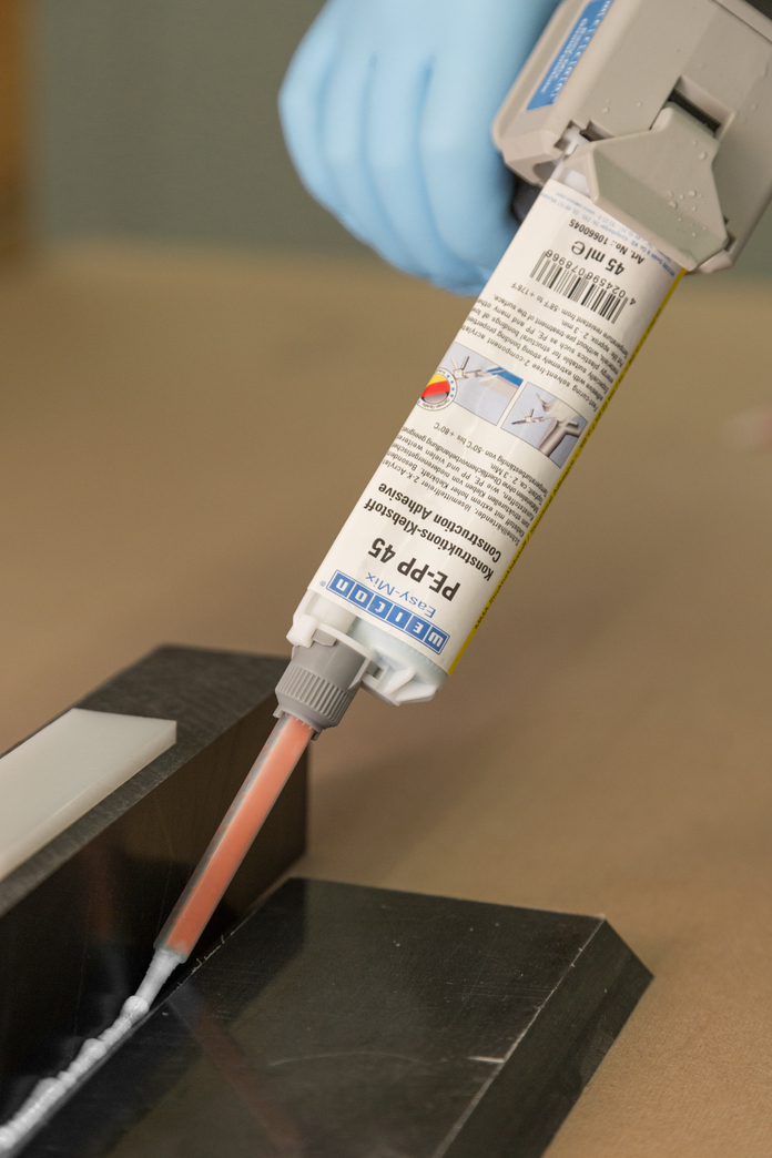 WEICON Easy-Mix PE-PP 45 is a 2-component construction adhesive based on methyl acrylate. It is particularly suitable for structural, high-strength bondings of Iow surface-energy plastics like PE, PP and TPE. Pre-treatment is not necessary, as the āintegrated primerā in the adhesive activates the surfaces and enables a high-stength bonding.