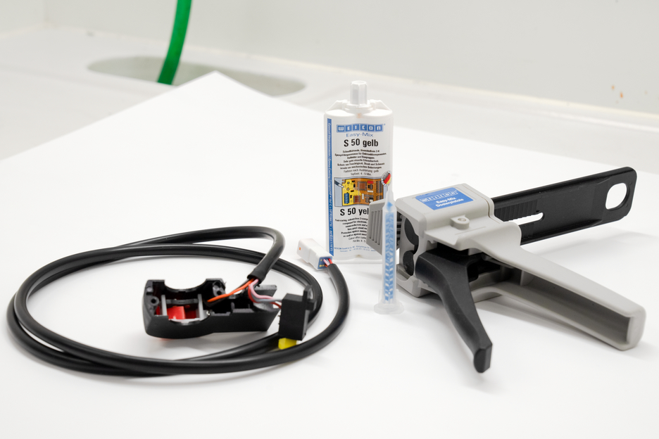 WEICON Easy-Mix S 50 yellow is a highly reactive casting compound. It can also be used as an adhesive owing to its high adhesive strength and short curing time. The epoxy resin system, which is resistant to high temperatures of up to +180 °C, is viscous, self-levelling, cures quickly and is impact-resistant in its hardened state. The casting compound has a short pot life of 4-5 minutes. The compound adheres excellently to many different surfaces, such as metal, plastics, fibreglass-reinforced plastics, wood, glass, ceramics and stone. The casting compound can be used in electronic engineering for protecting electronic components, semiconductors and building components. It protects components against moisture, dust and dirt as well as mechanical stresses. Easy-Mix S 50 yellow is suitable for applications in many different areas, such as grouting work in electrical engineering and the electronics industry, for casting cable connections, for applications in insulating technology, in metal construction, in tank and apparatus construction, fittings construction, and in ventilating and air-conditioning systems. Thanks to its distinctive yellow colour, Easy-Mix S 50 yellow makes visual control simple. The casting compound is processed with the user-friendly Easy-Mix system. The Dispenser Easy-Mix D 50 is required for processing Easy-Mix products in 50 ml cartridges.