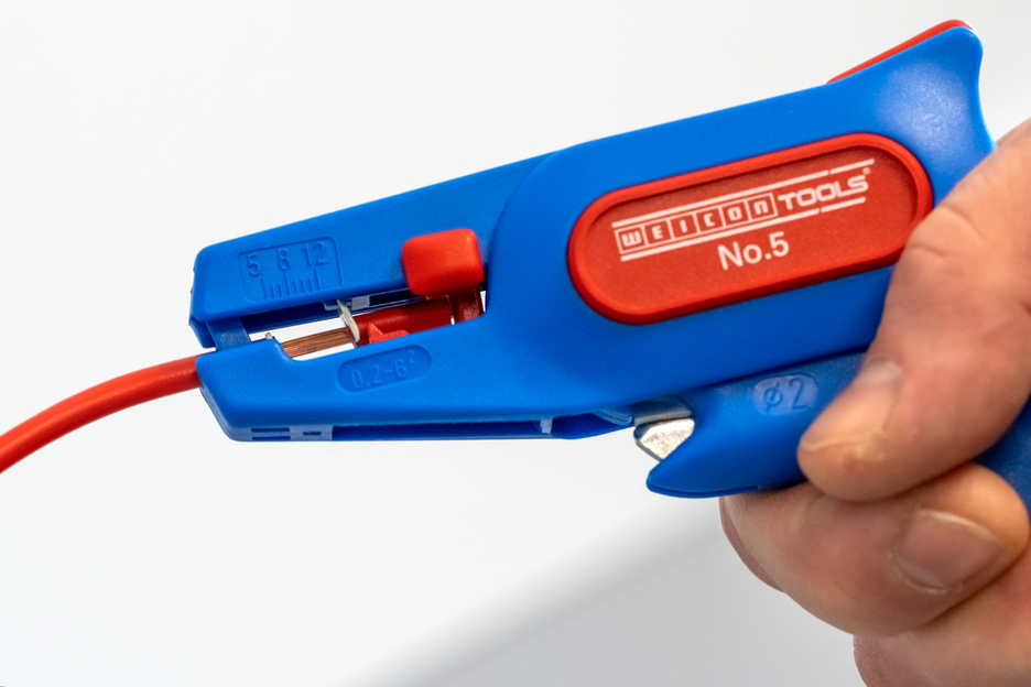 Automatic wire stripper for 0.2 – 6.0 mm² Side cutter for single wires of up to 2 mm ø Adjustable length stop for defined distances at e.g. WAGO-Clamps Cable stripper with working range of 4 – 28 mm Adjustable cutting blade for round and longitudinal cutting Ideal for the construction of switchboards