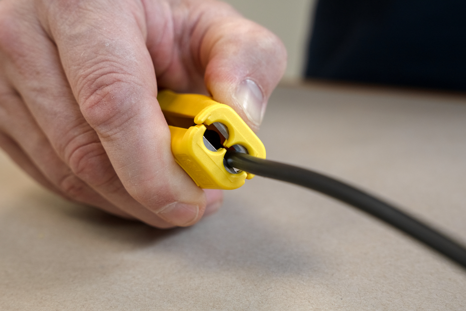 With the Mini-Solar 10/16 mm² Stripper, all common solar cables can be stripped fast and easily. Adjusting the cutting depth manually is not necessary. The integrated length stop (from 6-28 mm) is suitable for the stripping of solar cables of 10 or 16 mm². In addition, the glass-fibre reinforced tool has an easily accessible side cutter for cables up to 10 mm². When using the stripper, a precise cutting pattern is created during stripping. In addition, the Mini-Solar 10/16 mm² can be locked for space-saving storage.