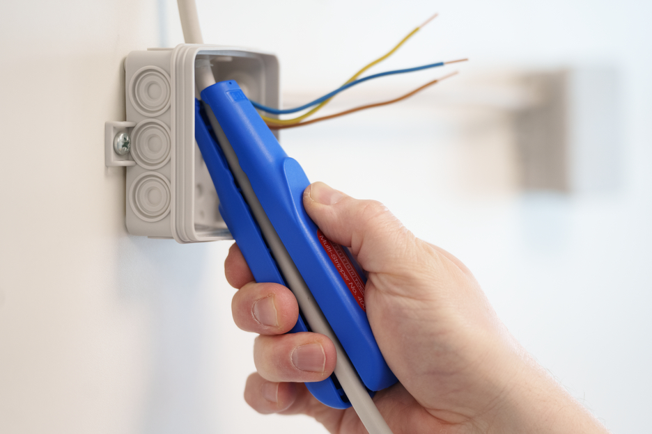WEICON Multi-Stripper No. 400, a universal stripping tool for the functions: circular cutting - longitudinal cutting - stripping - cutting. With this tool, cables can be stripped easily even in places that are difficult to access, e.g. in ceilings and walls, in junction and distribution boxes, switch cabinets. The contour blade can be used to strip the conductor cross-sections 0.5 mm², 0.75 mm², 1.5 mm², 2.5 mm², 4.0 mm² and 6.0 mm². The multi-stripper impresses with its handy design and wide range of uses.