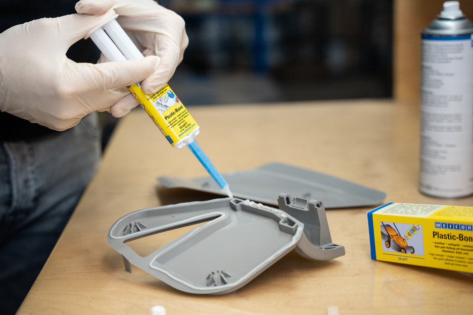 WEICON Plastic-Bond is a solvent-free structural adhesive with very good adhesion to plastics, aluminum, steel and many other meterials. The adhesive is suitable for static as well as dynamic loads, has high impact and peel strength and a maximum gap-filling capacity of 5 mm. Plastic-Bond is particularly convenient for structural bondings if high-strength connections are required. The adhesive is highly viscous and is therefore suitable for processing on vertical surfaces. The structural adhesive is universally applicable and can be used, for example, in plastics technology, in metal construction, in car body and vehicle construction, in mechanical engineering, in electrical engineering, in wood processing, or in trade show and exhibition construction.