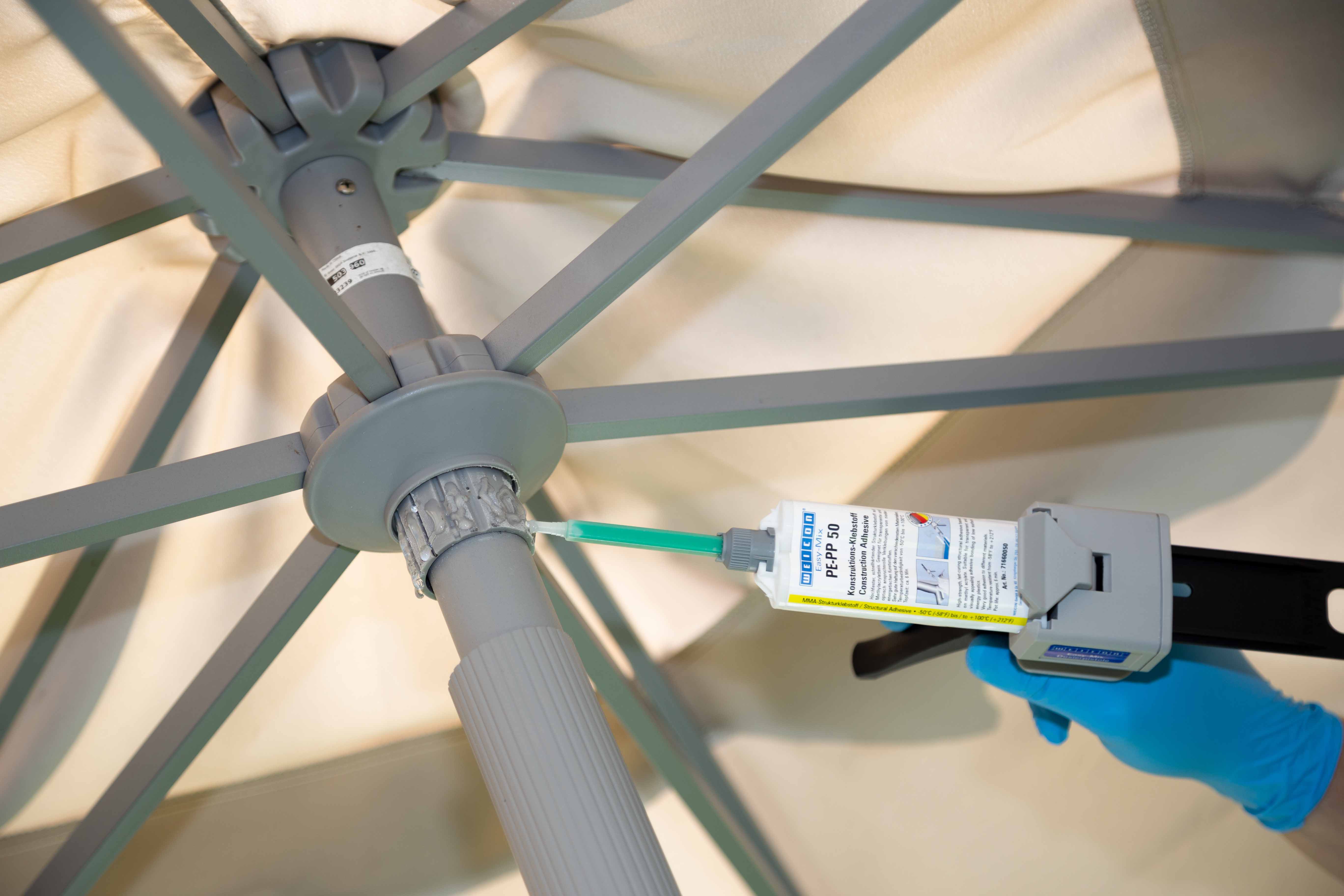 Repairing a parasol using WEICON Easy-Mix PE-PP 50