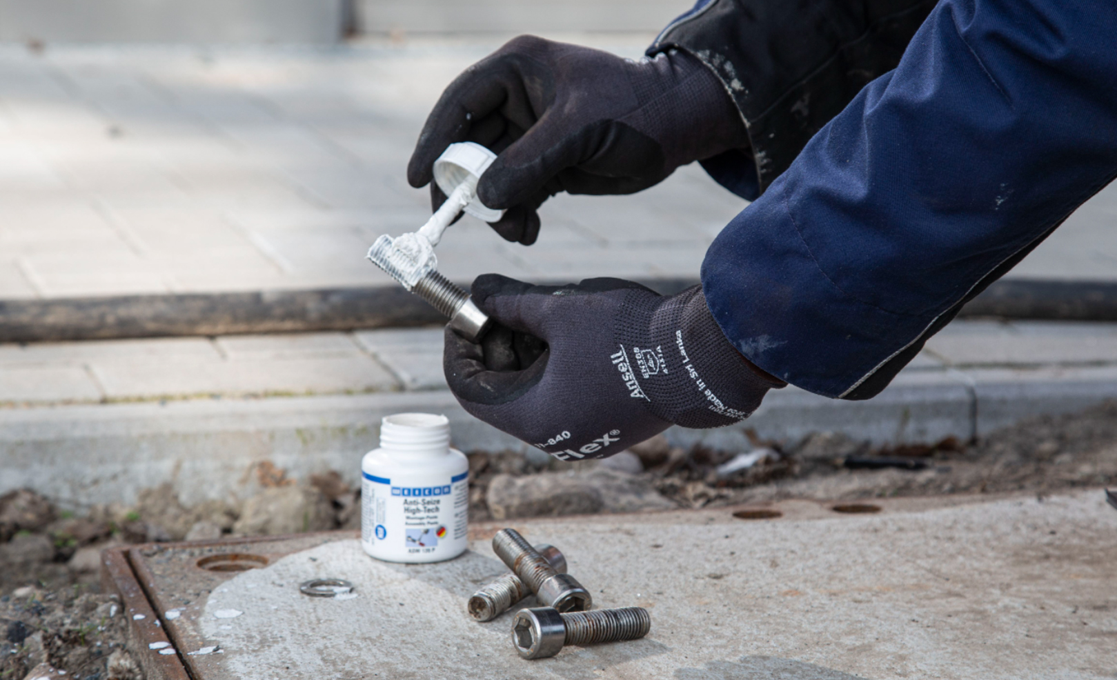 Assembly pastes, in contrast, have a high content of solid lubricant - usually between 30 and 50 percent. This means they are ideally equipped for high operating temperatures, high pressure loads or permanent outdoor weather conditions. They protect against oxidation, corrosion, fretting corrosion, stick-slip effects and "cold welding". Assembly pastes are used where little to no movement happens, but very high forces act. That is why they are the ideal lubricant for screw joints or pressing in pins and bolts. They ensure that screw joints "stick", but that they can still be disassembled at any time.