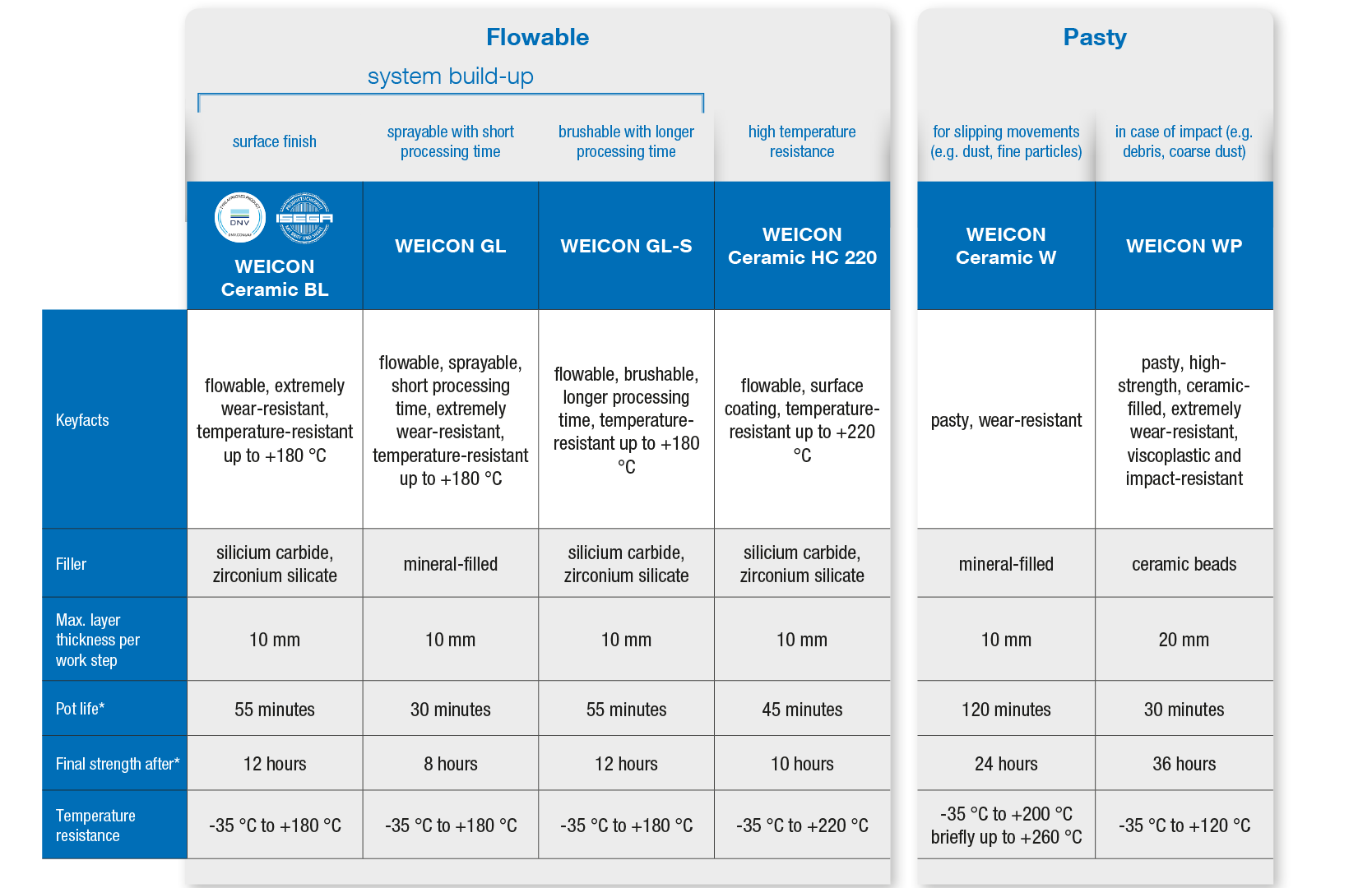 Due to damages, it is necessary to repair or even replace components at regular intervals. The acquisition of new components usually involves high costs. Repairs with epoxy resin systems or preventive coatings are considerably cheaper than a new acquisition and huge costs can be saved. An initial coating of the components with WEICON epoxy resin systems can also lead to a significant increase in service life.