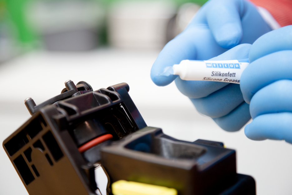 WEICON Silicone Grease is highly adhesive, transparent and very compatible with plastics. Owing to its NSF H1 registration, it is suitable as a lubricant for valves, fittings and seals in sensitive areas. The grease complies with the Guideline for Hygienic Assessment of Organic Materials in Contact with Drinking Water (KTW guideline) by the German Federal Environment Agency. It can be used in the food and beverage industry, in sanitary and heating construction, in the pharmaceutical industry as well as in sealing technology. WEICON Silicone Grease is safety-tested by the German Federal Institute for Materials Research and Testing (BAM) ā cf. leaflet 034-1 āList of non-metallic materials for use in oxygenā (DGUV information 213-075) of BG RCI. The grease is especially material-friendly, odourless and tasteless and has a temperature resistance of -50 °C to +200 °C. WEICON Silicone Grease is suitable for the lubrication of plastic parts, rubber parts and seals, valves, fittings and gaskets, for devices and systems and as an assembly aid for O-rings.