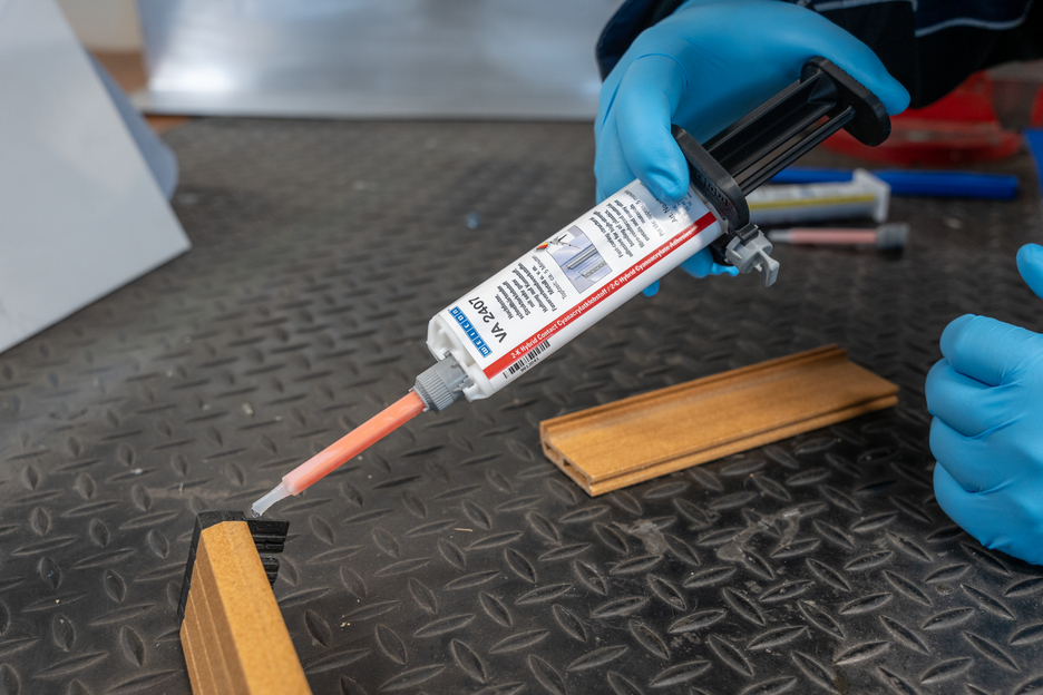 VA 2407 is a colourless and crystal clear curing two-component cyanoacrylate adhesive for bonding a wide variety of materials with and to each other. It adheres very well to many plastics (e.g. polycarbonate), steel, stainless steel, aluminium, ceramics, glass and rubber. The newly developed adhesive combines the advantages of instant adhesives with the process reliability of 2-component adhesives. The high-strength and fast-curing structural adhesive is sandable and paintable after approx. 25 minutes. It is resistant to weathering, many aggressive chemicals, impact stress and vibration. It is temperature-resistant from -20 °C to +120 °C (-40 to +248 °F). Depending on the geometry of the bond, gaps of up to 5 mm can be covered with VA 2407. Due to its fast and impact-resistant curing, it is particularly suitable for bonding e.g. plastic and rubber. It can also be used for structural adhesive bonding, where a coloured adhesive joint would affect the overall appearance of the component. VA 2407 bonds transparent plastics together, like Plexiglas and other materials, in a clean and visually appealing way. The adhesive is suitable for a wide variety of applications in plastic technology, mechanical construction, model and mould construction, metal construction, ship and boat building, bodywork and vehicle construction, trade fair and exhibition construction and many other areas of industry.