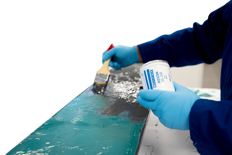 The epoxy resin system WEICON Ceramic HC 220 provides high abrasion resistance and serves as wear protection for heavily used surfaces. It is temperature-resistant up to +220 °C, flowable, ceramic-filled, resistant to chemicals and has a high adhesive strength. Ceramic HC 220 can be easily processed with a paint brush and applied to large surfaces. The epoxy resin systems is non-corrosive, anti-magnetic and cures practically without shrinkage. It adheres excellently to various surfaces such as metal, concrete, stone or asphalt. When combined with coarse materials such as silicon carbide in grain sizes of F14-F24, WEICON Ceramic HC 220 serves as an anti-slip coating, enhancing slip resistance in industrial facilities. This combination is perfectly suited for chemical plants and workshops where stairs or floors are contaminated with aqueous solutions. The product can be used in mechanical and plant engineering, in equipment engineering, and in many other areas of industry where high temperature loads are part of daily work.