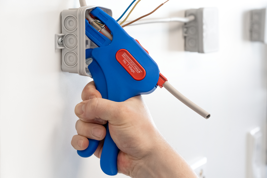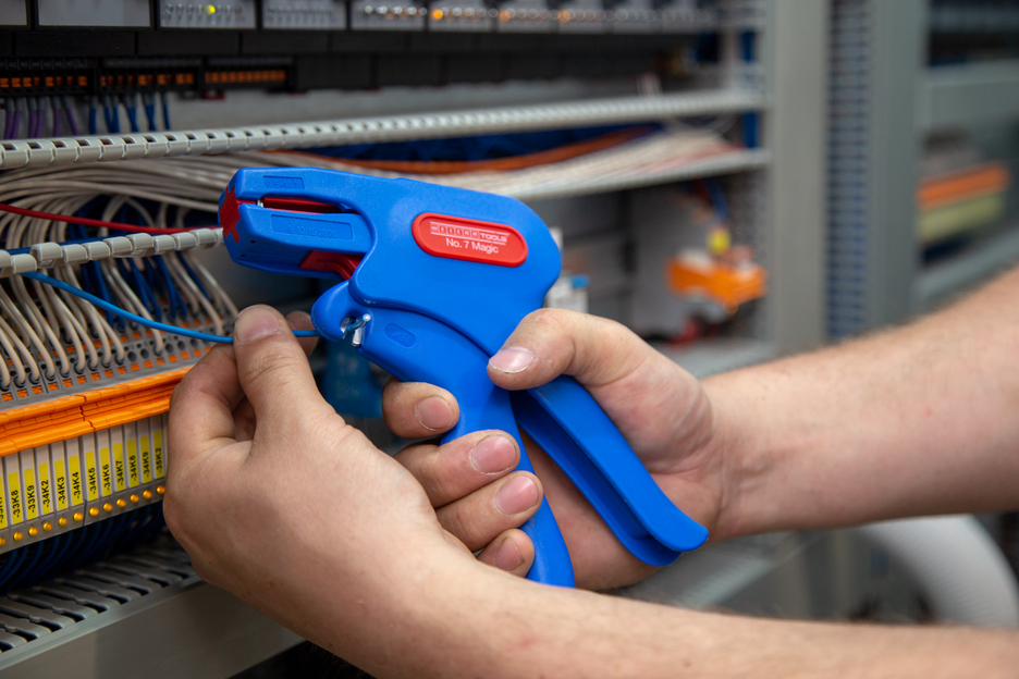 WEICON Wire Stripper No .7 Magic is a robust, ergonomic automatic wire stripper. The automatic scanning system is adjustable to different cable types and diameters with another 5-fold fine adjustment. The fibreglass-reinforced wire stripper has visual length scale from 8 - 24mm. This way, all flexible stranded cables from 0.5mm² - 16mm² and solid round cables from 0.5mm² - 10mm² are efficiently and evenly stripped. The stripper is also suitable for 2-core PVC